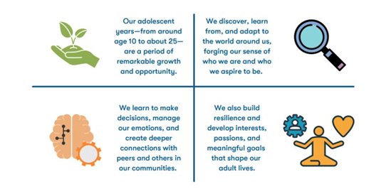 To support healthy development and positive mental health during this critical period, young people need opportunities that are designed to work in alignment with the core developmental needs: